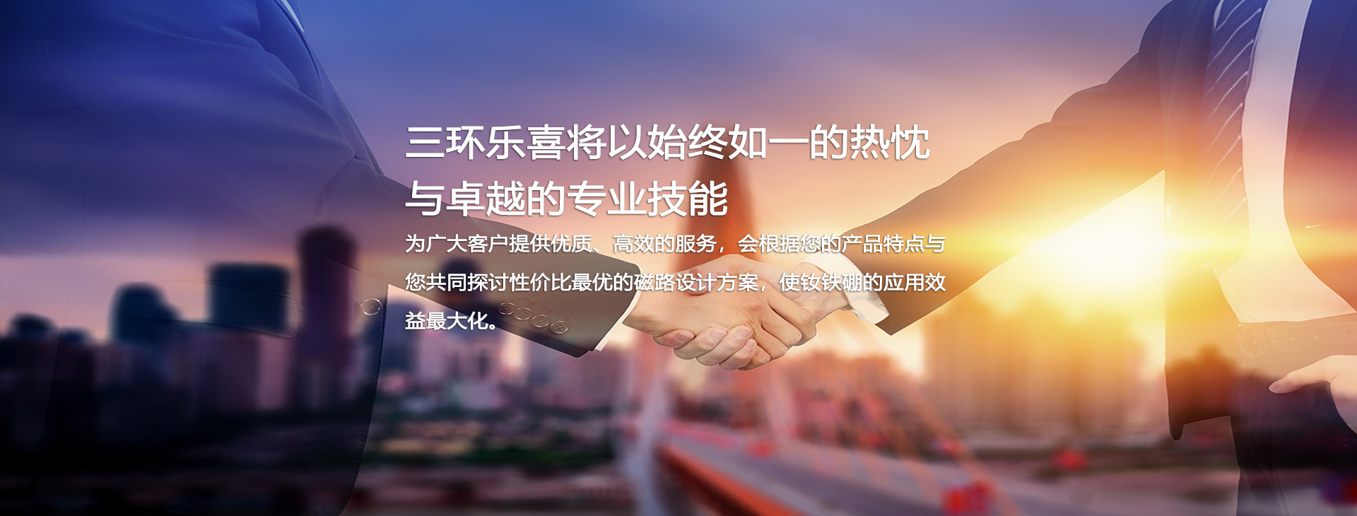 三環(huán)樂喜新材料有限公司,成立于1990年,控股股東中科三環(huán)(股票代碼:000970)為中國稀土永磁材料產業(yè)的代表企業(yè)、全球特大的釹鐵硼永磁體制造商之一。自成立以來,公司一直致力于研發(fā)、生產、銷售中、高品質燒結釹鐵硼,年生產能力超過6000噸,是中科三環(huán)的重要生產基地。
